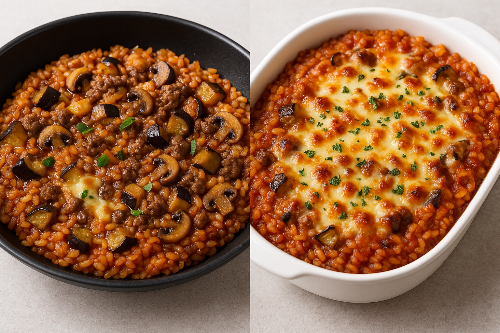 같은 재료로 간단하게 프라이팬 볶음밥으로도, 치즈를 올려 오븐에 구운 그라탱 스타일로도 즐길 수 있어요.