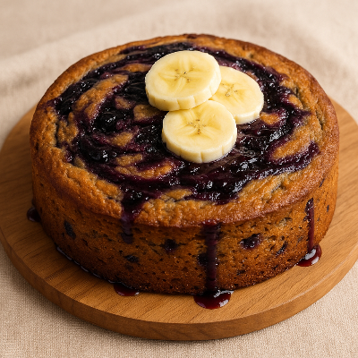 - 식힌 뒤 블루베리 시럽을 위에 살짝 더 뿌리고, 바나나 슬라이스로 장식하면 완성 💕